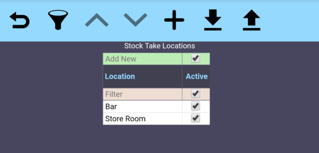 Napkin EPOS allows you to record ‘Stock Takes’ in various locations. This could be ‘Main Bar’ or ‘Cellar’ or ‘Store Room’. Therefore it is necessary to setup these different locations under the section <Back Office><Stock Take Locations>. This will be then be used in <Back Office><Stock Take>.