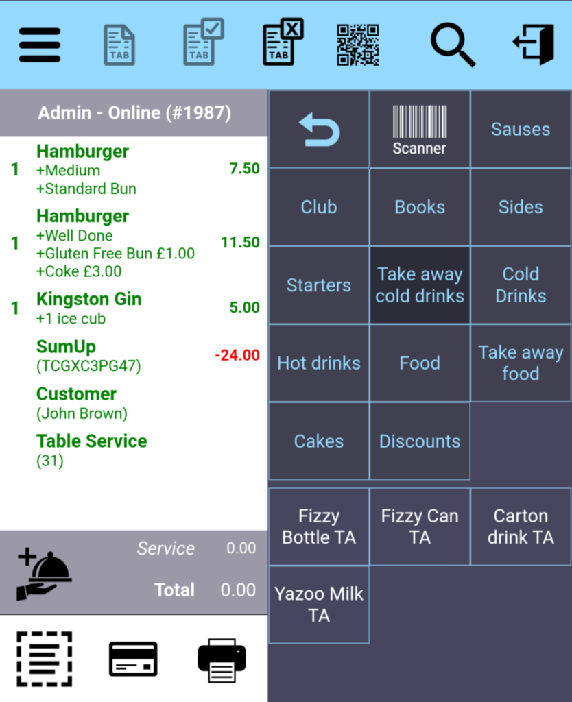 To finalise and cash out the Online Tab, simply click the icon like any other tab.  Once done, this will reduce the queue number for all other orders.