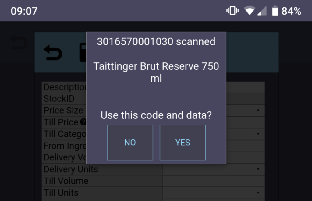 • Till Units – cl (centilitre)  /  ml (millilitre) / litre / pint / unit / g (gram) / kg